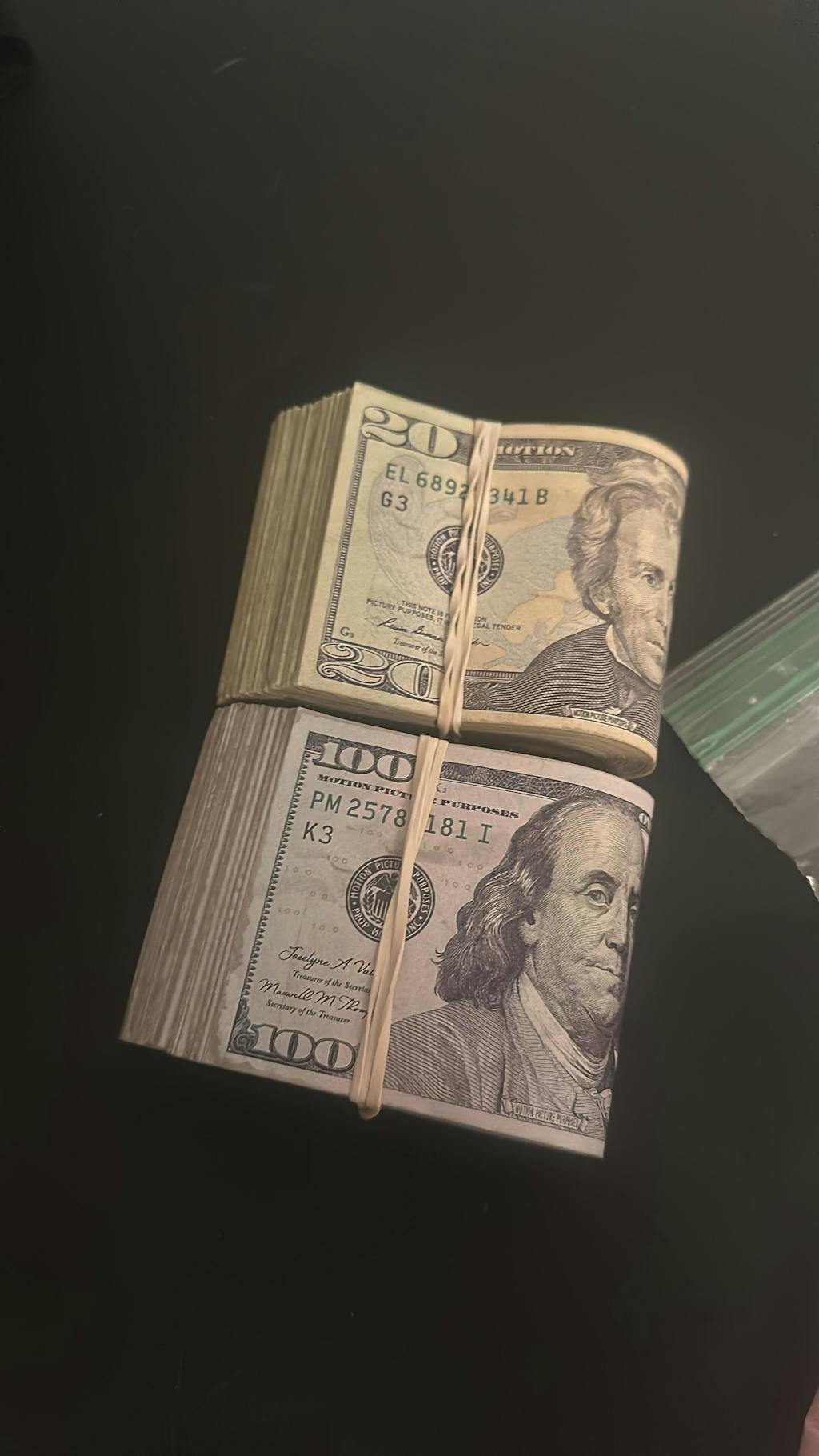 These $10,000 & $2,000 RealAged® Full Print Prop Money Bands offer unmatched quality, detail, and realism, perfect for your money scene or shot. Included are one hundred $100 New Series RealAged® Bills and one hundred $20 New Series RealAged® Bills, a total of $12,000 accurate realistic highly detailed non-glossy double-sided prints. Plus, they come folded with the rubber band just as pictured. Perfect for music videos, movies, films, TV, ads, and more. Get the closest you can to the real thing!